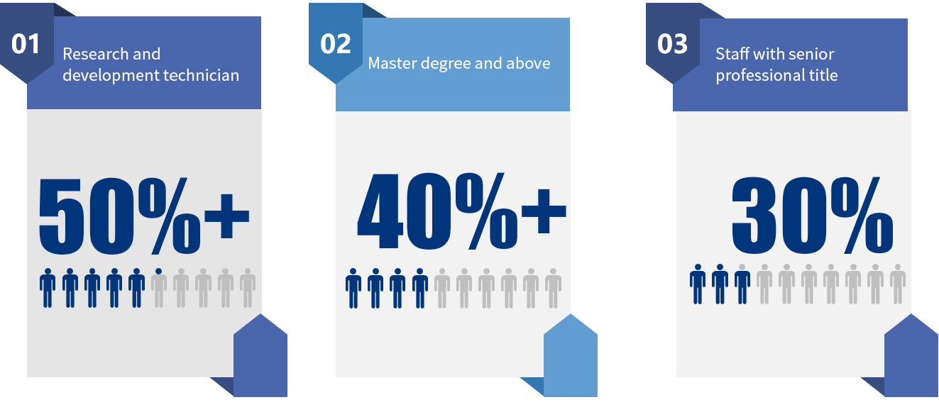 CAERI EQUIPMENT focuses on cultivating and accumulating technical strength, persists in building a talent team with above 50% of research staffs and actively builds a responsible, struggling and innovation-driven technology atmosphere. Through nearly 30 years of exploration and development, the Company has cultivated a group of diligent and enterprising technical staffs.